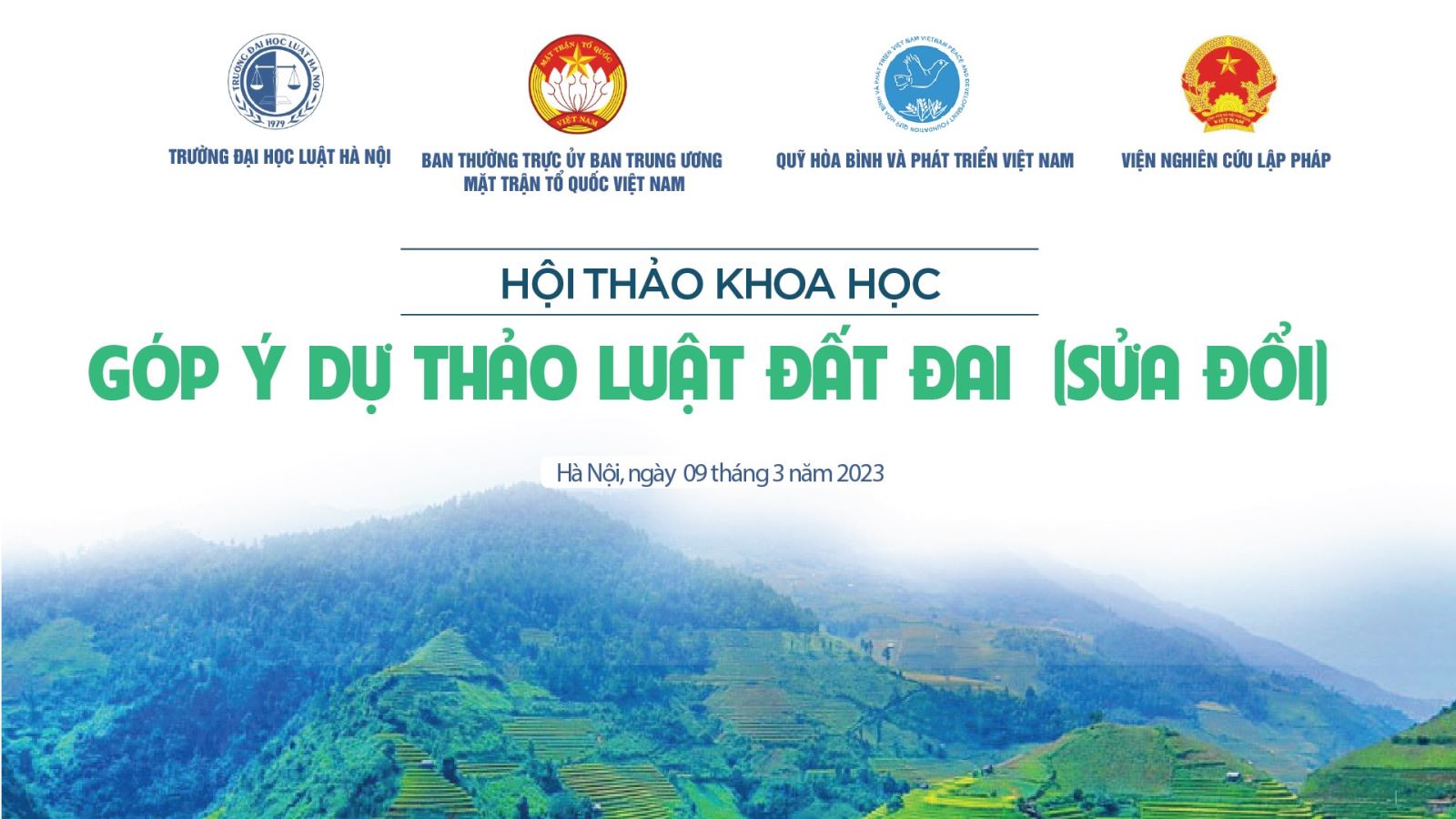 Sáng 9/3, Hội thảo khoa học trọng điểm “Góp ý dự thảo Luật Đất đai (sửa đổi) được đồng tổ chức bởi Trường Đại học Luật Hà Nội, Ban thường trực Ủy ban Trung ương Mặt trận Tổ quốc Việt Nam, Quỹ Hòa bình & Phát triển Việt Nam và Viện Nghiên cứu Lập pháp.