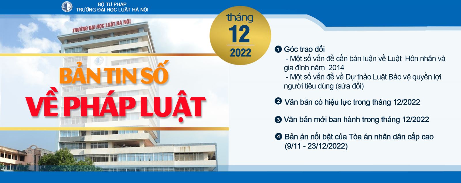 Đề án tổng thể “Tiếp tục xây dựng Trường Đại học Luật Hà Nội và Trường Đại học Luật Thành phố Hồ Chí Minh thành các trường trọng điểm đào tạo cán bộ về pháp luật” là 1 trong 10 sự kiện nổi bật của Ngành Tư pháp năm 2022.