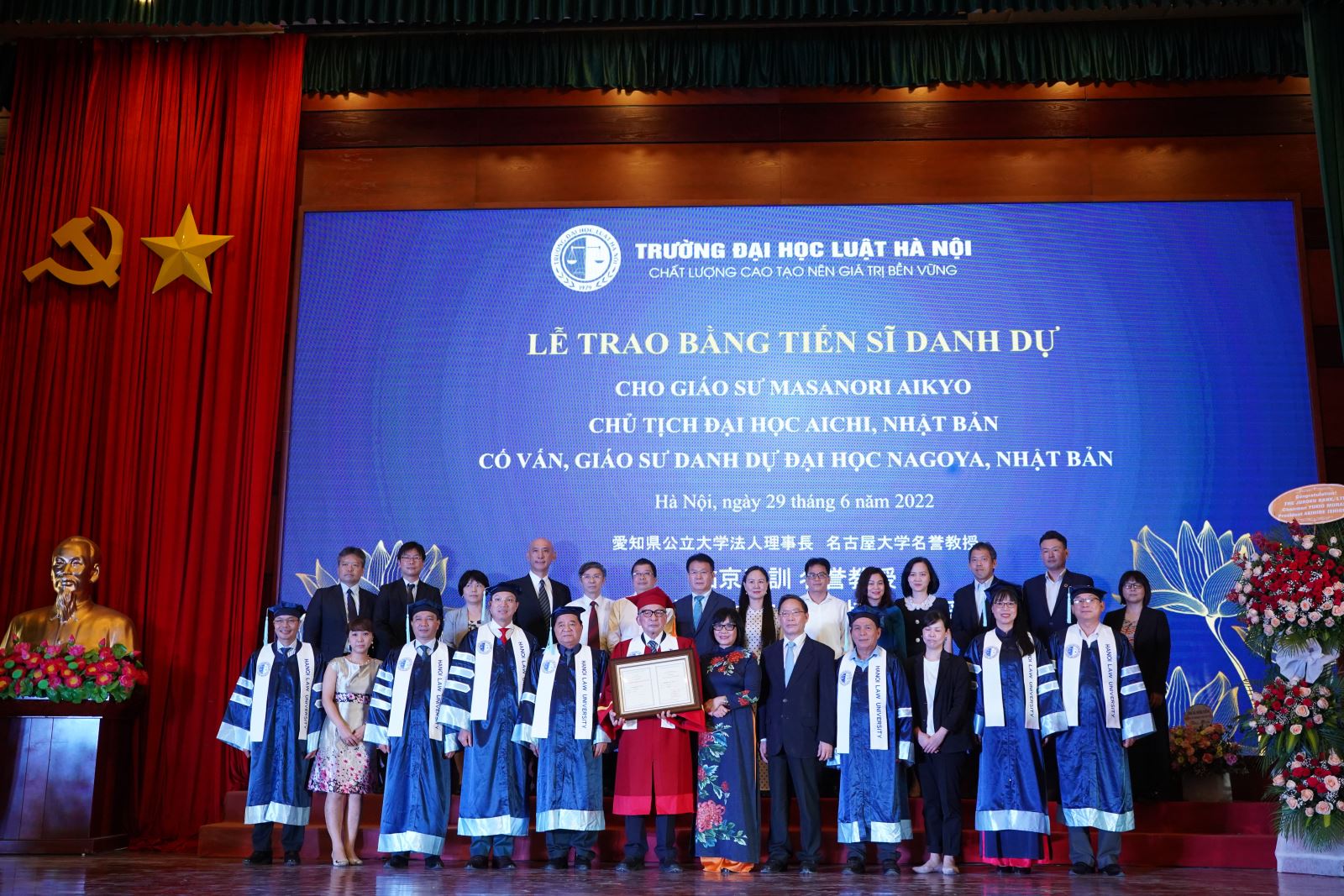 Lễ trao bằng Tiến sĩ danh dự cho GS. Masanori AIKYO- Chủ tịch Trường Đại học Aichi, Nhật Bản, Cố vấn, Giáo sư danh dự Trường Đại học Nagoya, Nhật Bản.