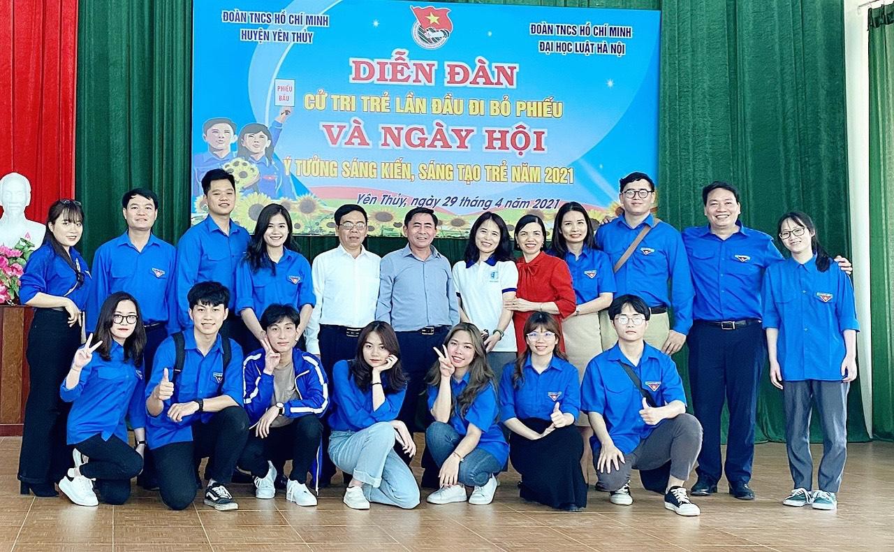Đoàn viên Đại học Luật Hà Nội tuyên truyền pháp luật tới các cử tri trẻ tuổi