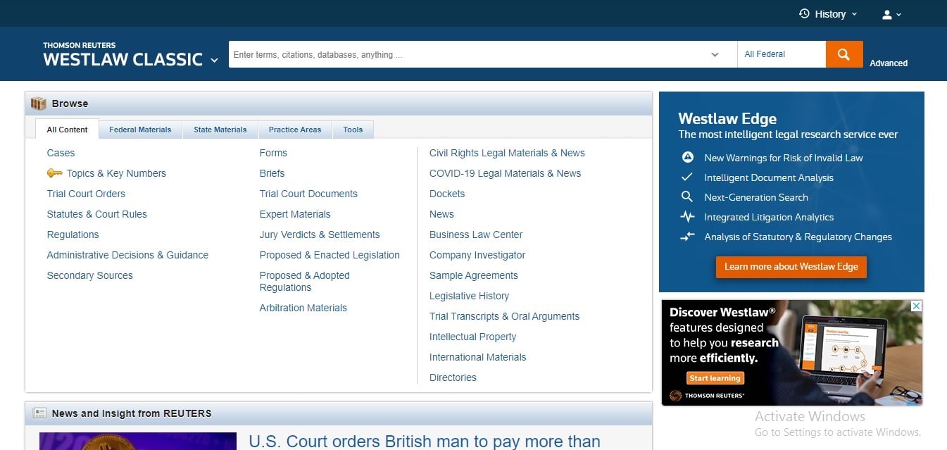 Thông báo V/v sử dụng cơ sở dữ liệu pháp luật Westlaw