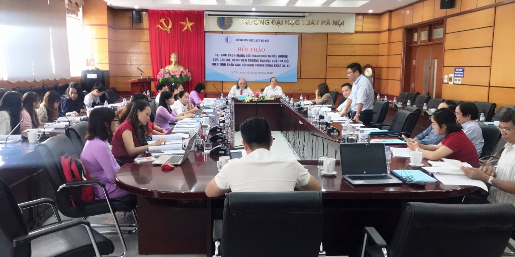Sáng ngày 23/10/2019, Trường Đại học Luật Hà Nội đã tổ chức Hội thảo khoa học với chủ đề: “Đạo đức cách mạng với trách nhiệm nêu gương của cán bộ, đảng viên Trường Đại học Luật Hà Nội theo tinh thần các Hội nghị Trung ương khóa XI, XII”.