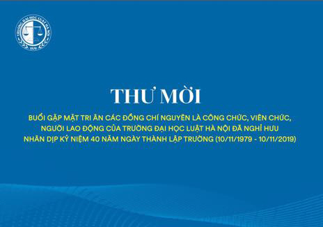 THƯ MỜI THAM DỰ BUỔI GẶP MẶT TRI ÂN CÁC ĐỒNG CHÍ NGUYÊN LÀ CÁN BỘ, CÔNG CHỨC, VIÊN CHỨC, NGƯỜI LAO ĐỘNG CỦA TRƯỜNG ĐẠI HỌC LUẬT HÀ NỘI ĐÃ NGHỈ HƯU NHÂN DỊP KỶ NIỆM 40 NĂM NGÀY THÀNH LẬP TRƯỜNG ĐẠI HỌC LUẬT HÀ NỘI (10/11/1979 – 10/11/2019)
