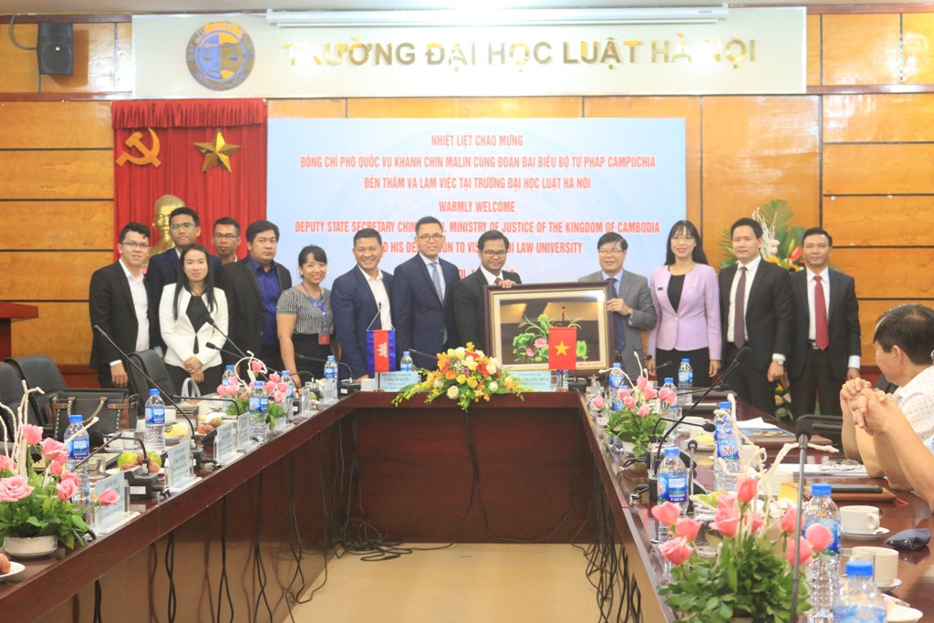 Chiều ngày 19 tháng 6 năm 2018, Đoàn công tác của Bộ Tư pháp Vương quốc Campuchia do ngài Chin Malin - Phó Quốc vụ khanh làm trưởng đoàn đã đến thăm và làm việc tại Trường Đại học Luật Hà Nội.