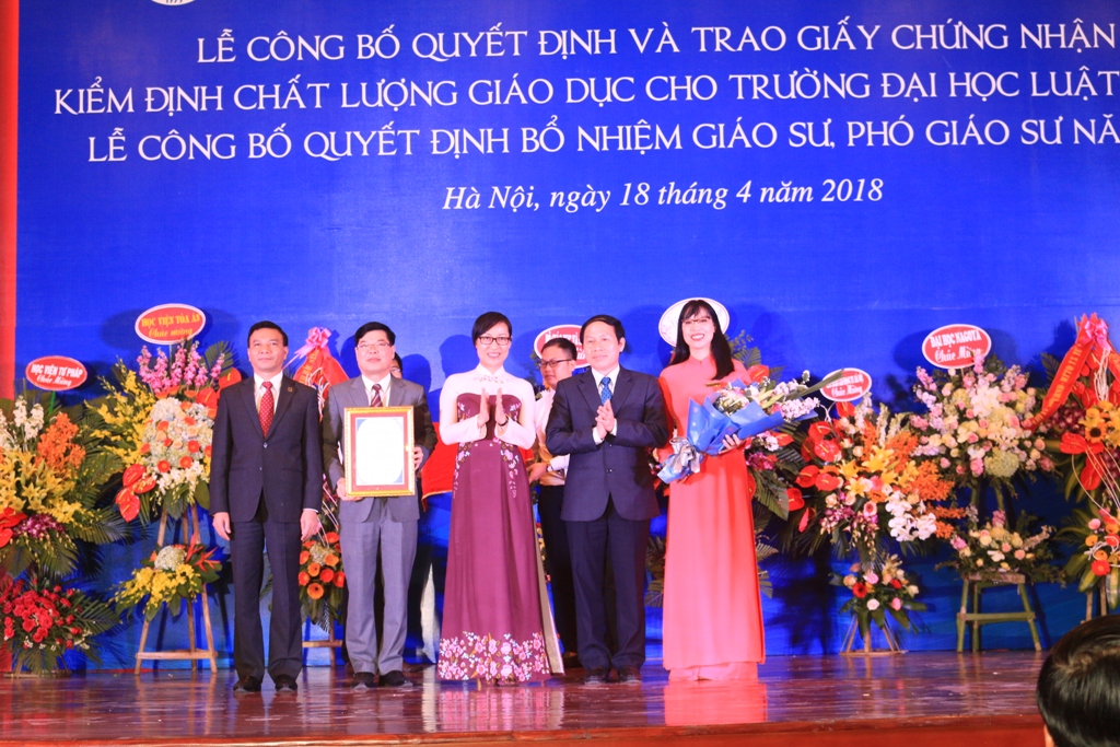 Chiều 18/4/2018, Trường Đại học Luật Hà Nội đã long trọng tổ chức Lễ công bố quyết định và trao Chứng nhận kiểm định chất lượng giáo dục và Lễ công bốquyết định bổ nhiệm Giáo sư, Phó Giáo sư năm 2018.