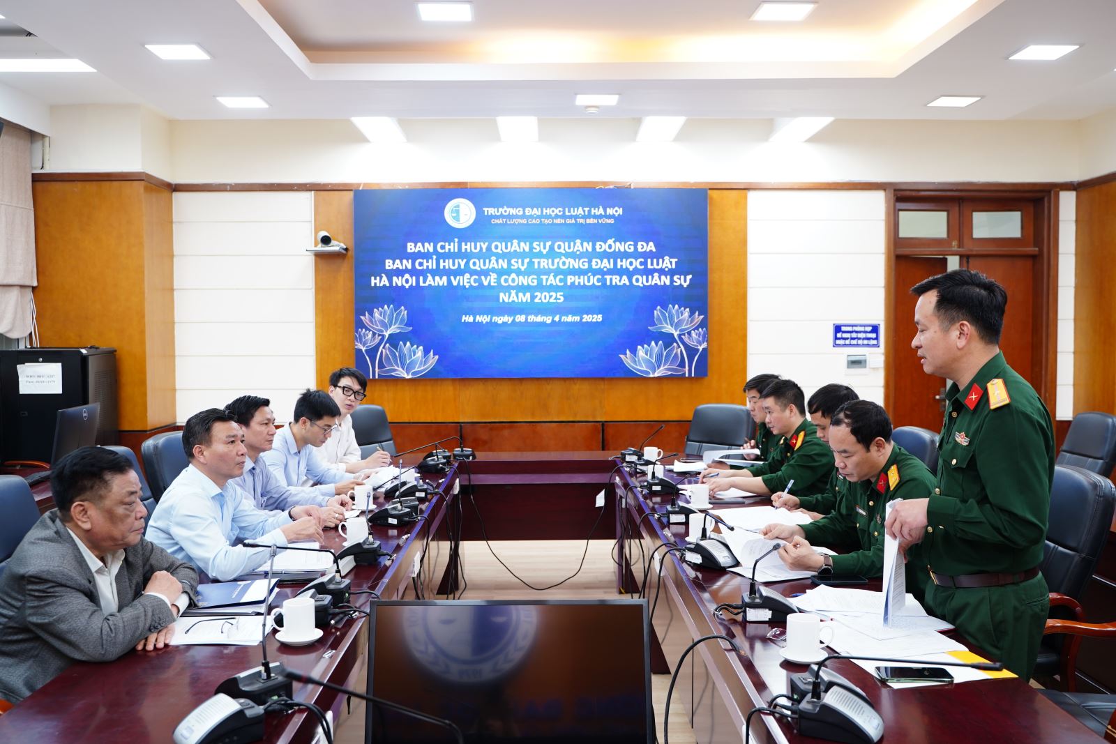 Ban Chỉ huy quân sự quận Đống Đa và Ban chỉ huy quân sự Trường Đại học Luật Hà Nội làm việc về công tác phúc tra quân sự năm 2025