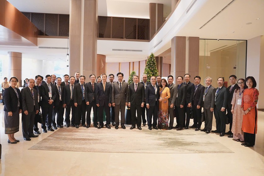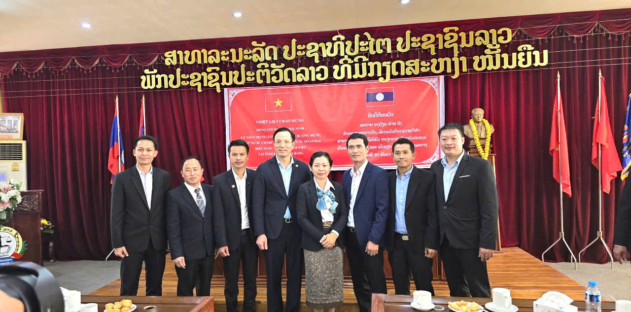 Hiệu trưởng Đoàn Trung Kiên tháp tùng Bộ trưởng Bộ Tư pháp Nguyễn Hải Ninh thăm và làm việc với Học viện Tư pháp Quốc gia Lào - Cơ sở Luang Pra Bang