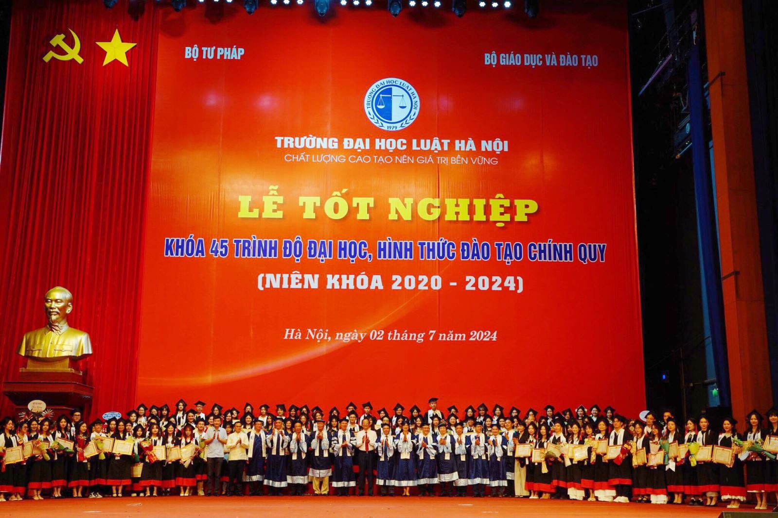Trường Đại học Luật Hà Nội tổ chức Lễ tốt nghiệp và trao bằng tốt nghiệp lớp VB120A (niên khóa 2020 - 2024) và lớp VB221A (niên khóa 2021-2024) trình độ đại học hình thức đào tạo VLVH